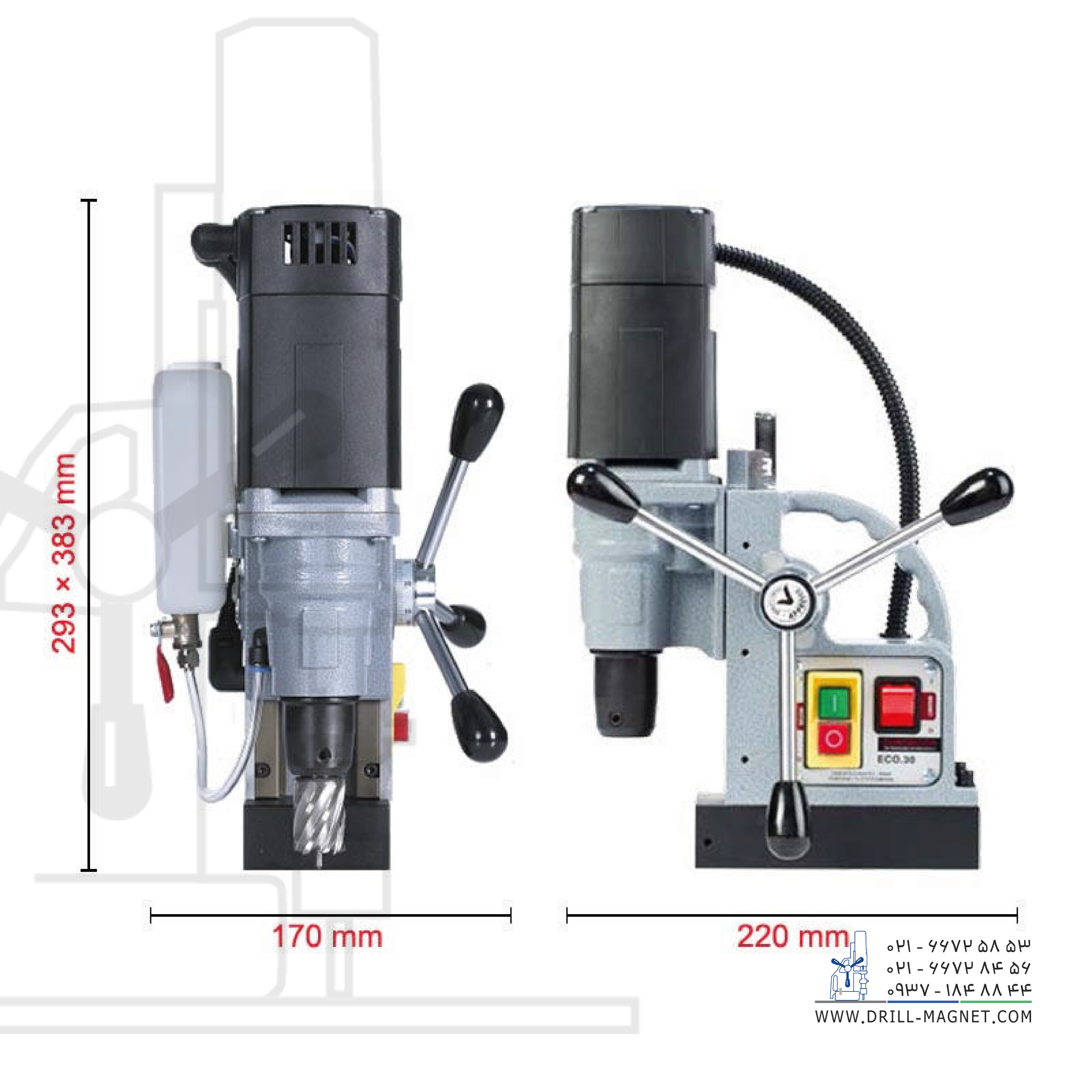 دریل مگنت پرتابل ECO.30 با طراحی موتور پربازده، سرعت ۴۰۰ دور در دقیقه زیر بار و سرعت ۷۷۵ دور در دقیقه بدون بار، تعویض سریع و آسان مته، اسپیندل و مورس مستقیم، دنباله ولدان ۱۹.۰۵ میلیمتری، کورسکاری ۹۰ میلیمتری، سوراخکاری با مته گردبر حداکثر قطر ۳۰ میلیمتر و با مته معمولی حداکثر قطر ۱۳ میلیمتر مناسب سوراخکاری، برش فولاد و مواد مشابه دیگر میباشد.