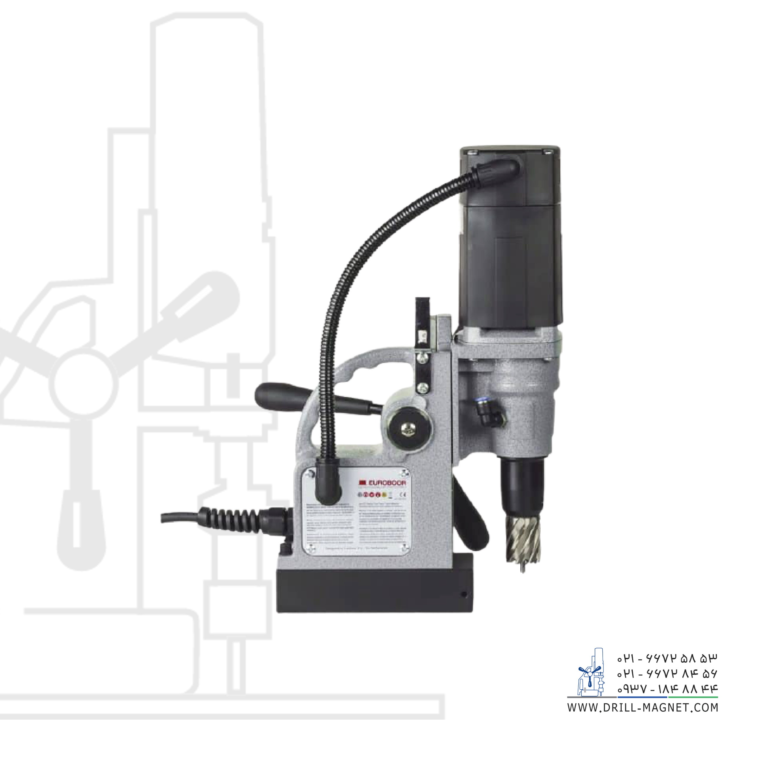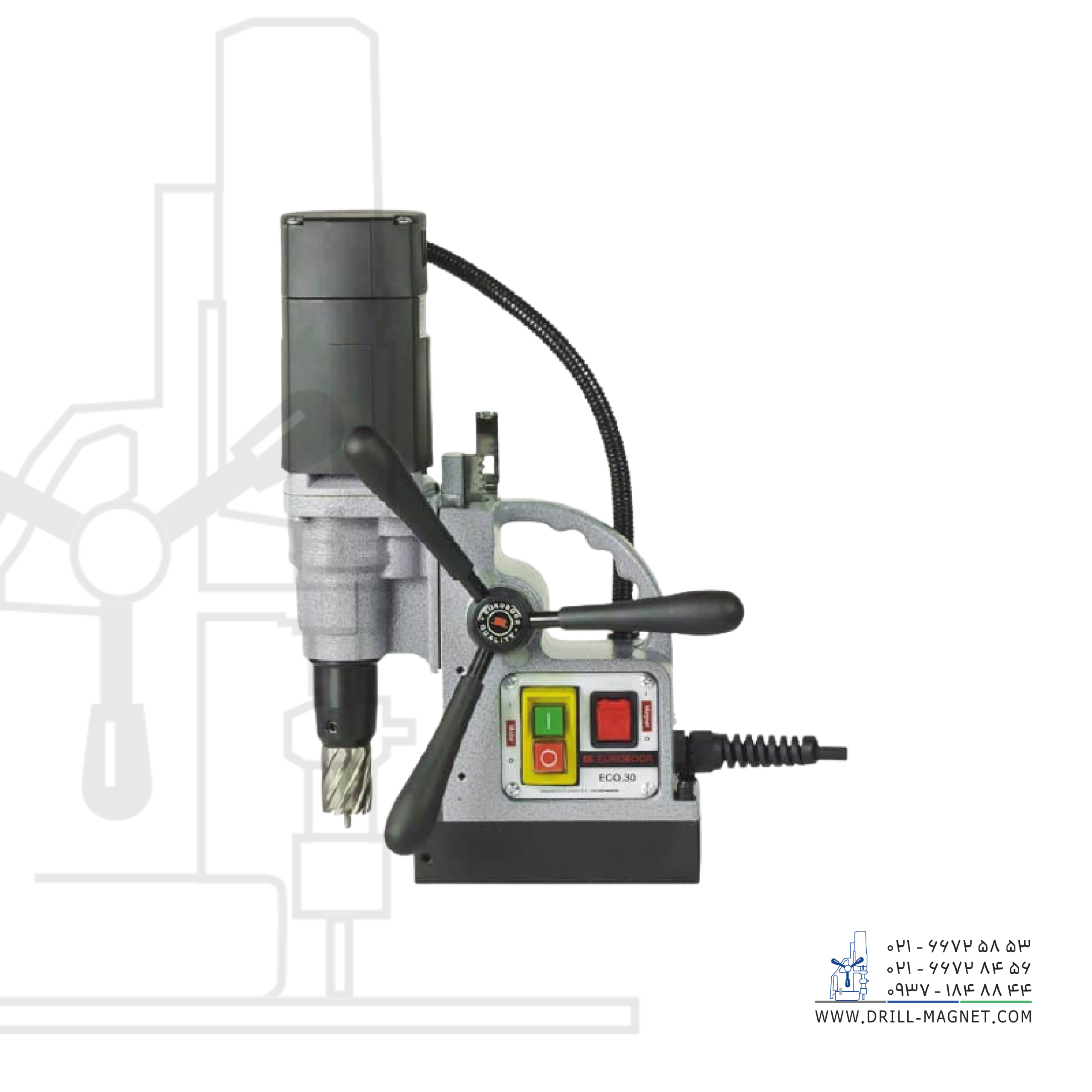 ساخت کشور هلند. دریل مگنت پرتابل مدل ECO.30 محصول شرکت یوروبور هلند به دلیل وزن سبک ۸.۵ کیلوگرمی، حجم کم و قابلیت حمل آسان به کاربر اجازه میدهد تا با راحتی دریل مگنت ۳۰ را در اماکن مرتفع و یا با دسترسی سخت در انواع حالت های عمودی و افقی (مانند سازههای فلزی عمودی، تیرهای ساختمانی و …) جابهجا و سوراخکاری کند.
